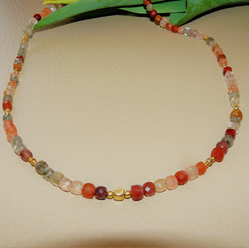 Art.-Nr. 1134 Rutilquarz facettierte Würfel 4x4mm Zwischenteile aus vergoldetem 925 Sterling Silber Acrylmagnetverschluss, 89,00€