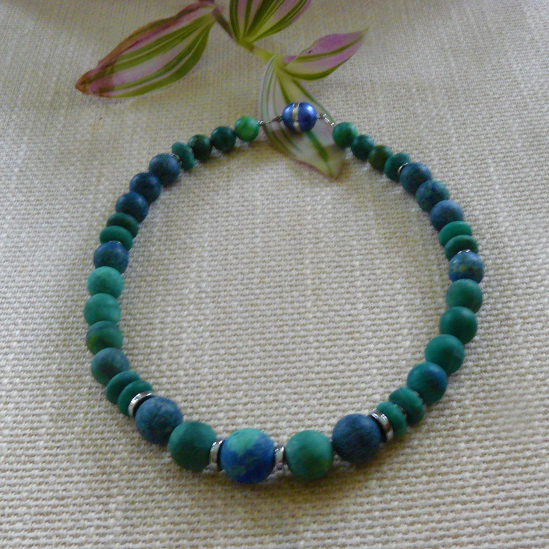 Art.-Nr. 500 Prasem Linsen+Kugeln Ø12+14mm, Lapislazulikugeln Ø12+16mm, Dumortieritkugeln, Ø14mm, Hämatitlinsen silber, Acrylmagnetverschluss, 49,00€