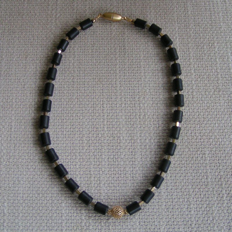 Art.-Nr. 584 Matte Onyxwalzen 8x10mm, Hämatitsäulen goldfarben, Webkugeln Ø 10mm +4mm mittig aus vergoldetem 925 Sterling Silber, Acrylmagnetverschluss, 49,00€