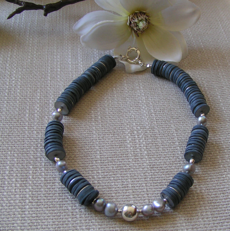 Art.-Nr.682 Shellscheiben Ø15mm, Süßwasserperlen, Zwischenteile und Federringverschluss aus 925 Sterling Silber, 119,00€