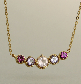 Art.-Nr. Ca-CS1641AD „Silbercollier vergoldet mit Rosenquarz, Amethyst und Rhodolith“ Steindurchmesser: 4,5mm, 3mm Länge: 40+5 cm, 87,00€