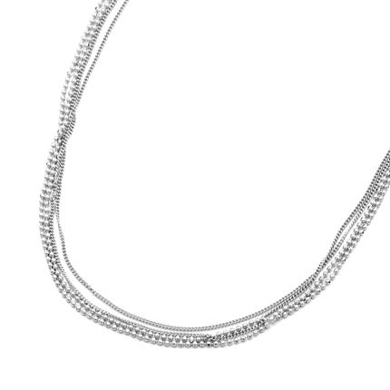 Art.-Nr. DUR-K2314 Vierteilige Kette "Pure" bestehend aus zwei geschliffenen Kugelketten kombiniert mit zwei zierlichen Rundpanzerketten, Länge 45 cm + 5 cm Verlängerung. Alles aus rhodinierten 925er Sterlingsilber. Länge:45+5cm, 71,95€