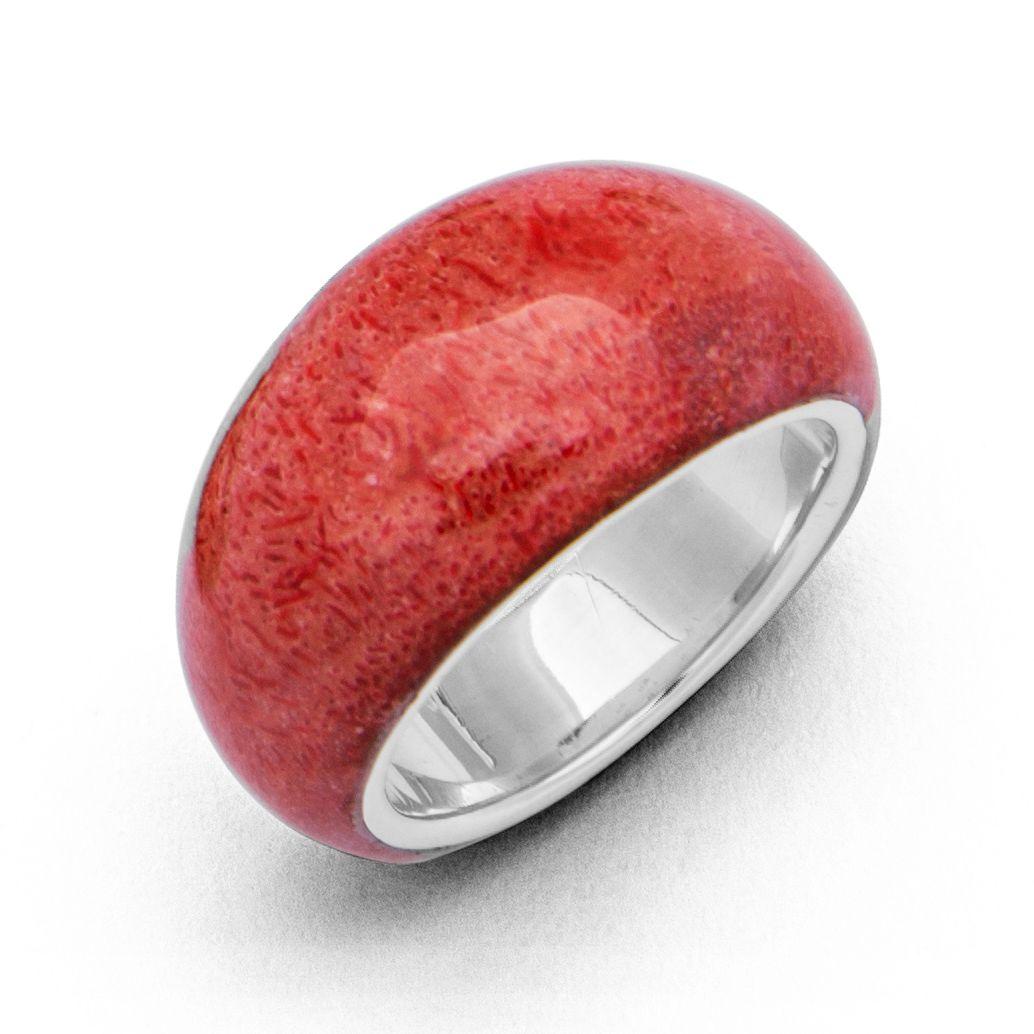 Art.-Nr. DUR-R4400 Korallenring mit sich verjüngender Schiene in 925er Sterling-Silber gefasst, Höhe: 1,2cm, Breite: 2cm, auch in Gr. 62 u. 64 erhältlich 32,00€