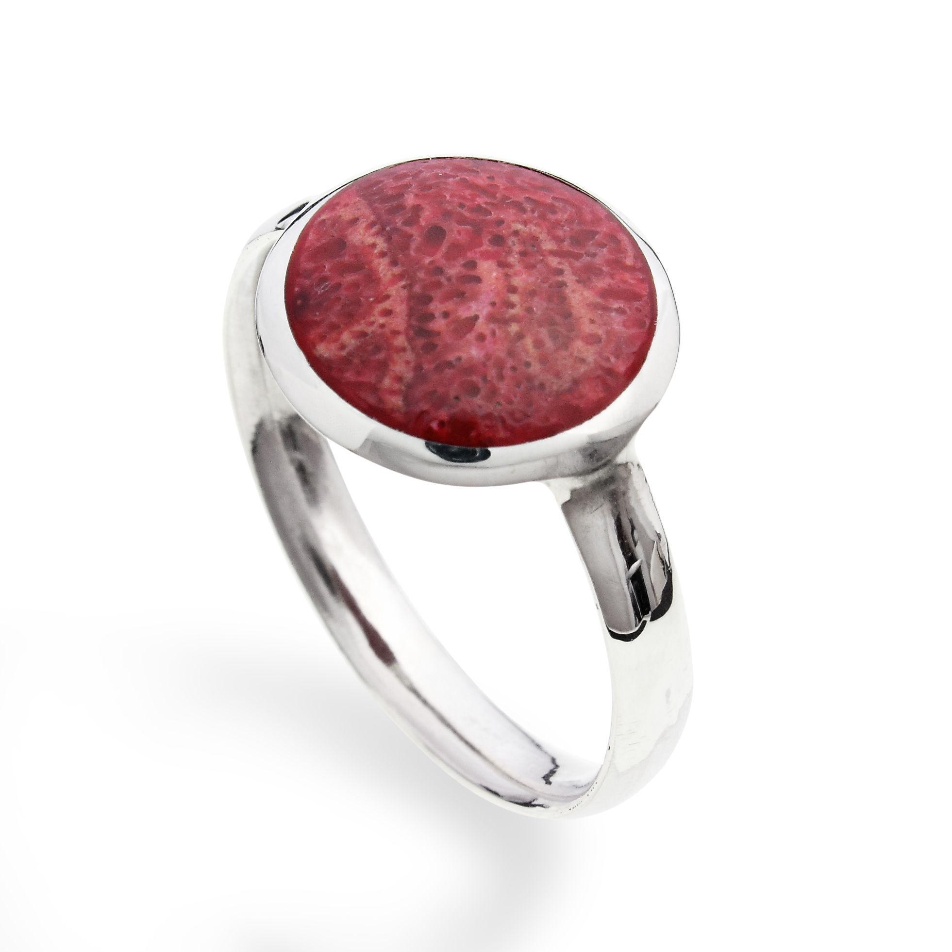 Art.-Nr. DUR-R4501 Runder, polierter Korallenring aus 925er Sterling-Silber, Ø 1,3 cm, auch in Gr. 62 erhältlich, 29,90€